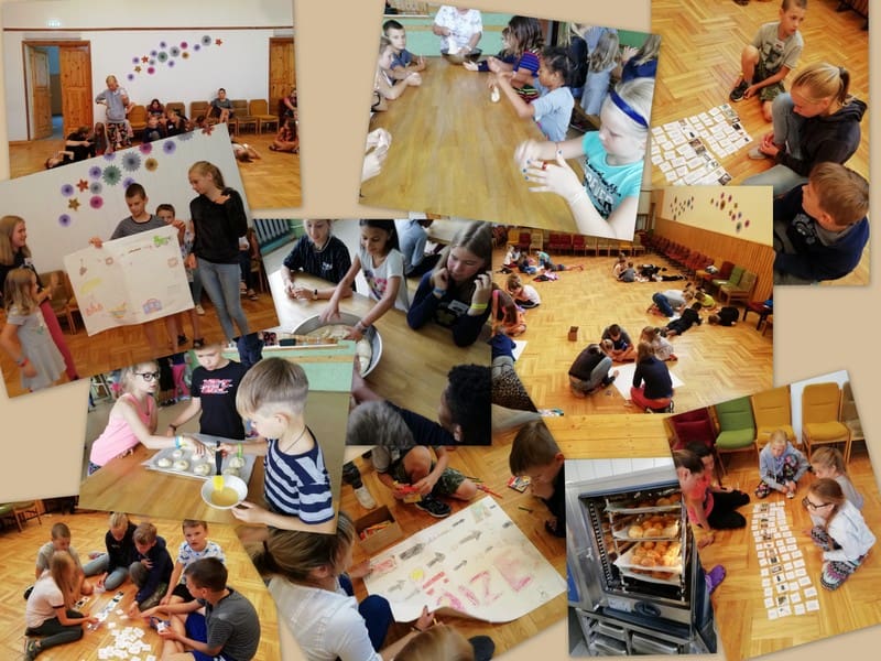 Šodien Amatu diena. Rīta pusi pavadām mierīgākā atmosfērā – izspēlējam spēli – puzli par senajiem amatiem, kur seno amata rīku nosaukumi jāsaliek kopā ar atbilstošu skaidrojumu un attēlu. Pēc tam runājam par dažādām profesijām un tām nepieciešamajām prasmēm. tad noskatāmies filmiņu par maizes ceļu un tad grupās veidojam paši savu maizes ceļu zīmējumos. Noslēgumā kopīgi veidojam un cepam bulciņas.