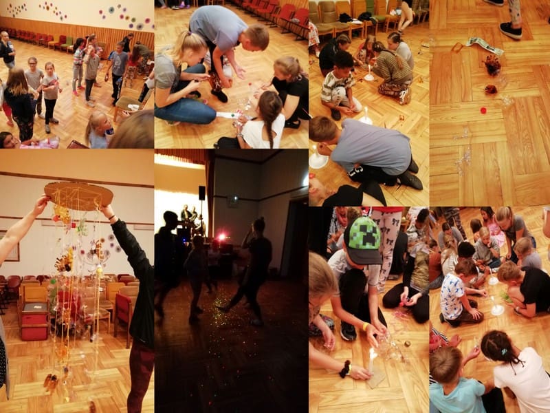 Pēc atgriešanās skolā vakaru pavadām veidojot vēja zvanus no pet pudelēm un nedaudz paballējamies. (nakts trasīti atlikām, jo līst lietus)