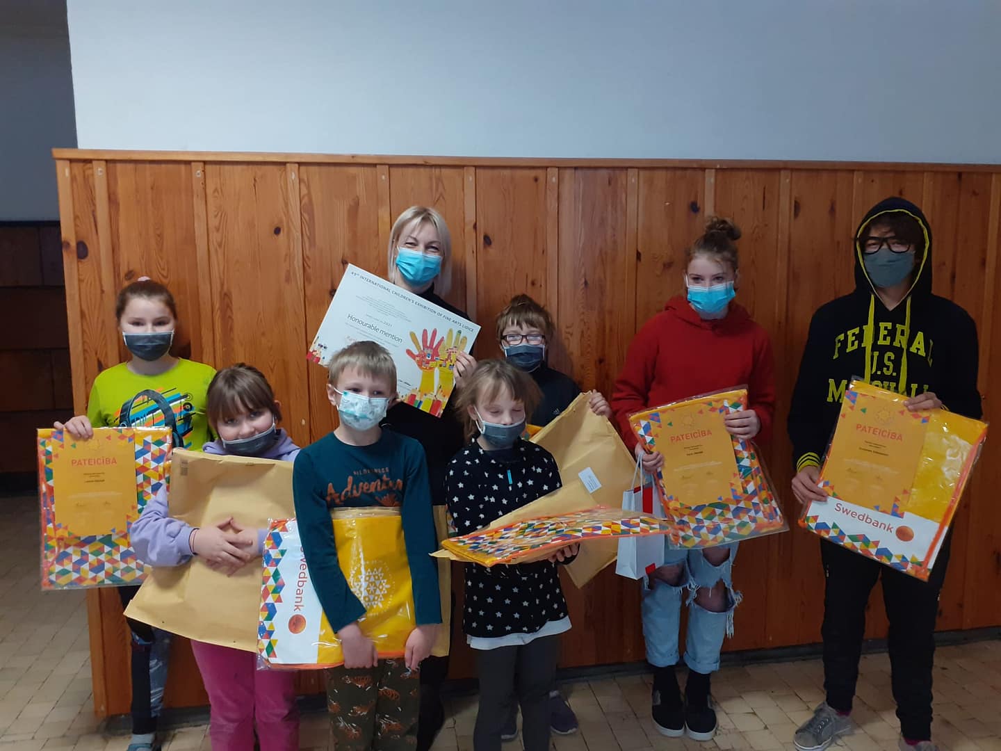 Šodien, 13.janvārī, beidzot skolēni saņēma apbalvojumus no Čehijas – konkurss “Lidice 2021” un “Latvijas Skolu jaunatnes dziesmu un deju svētki 2021” vizuālās mākslas konkursa.
