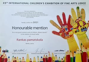 Panākumi starptautiskajā bērnu tēlotājmākslas izstādē “Lidice 2021”