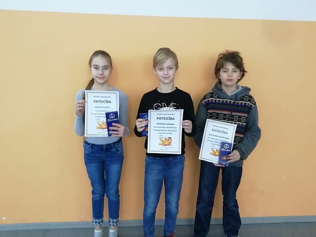 3.klasē latviešu valodā 1.vieta Mikum Danielam Brencim, 2.vieta Kristapam Losevam, 3.vieta Markam Korabo