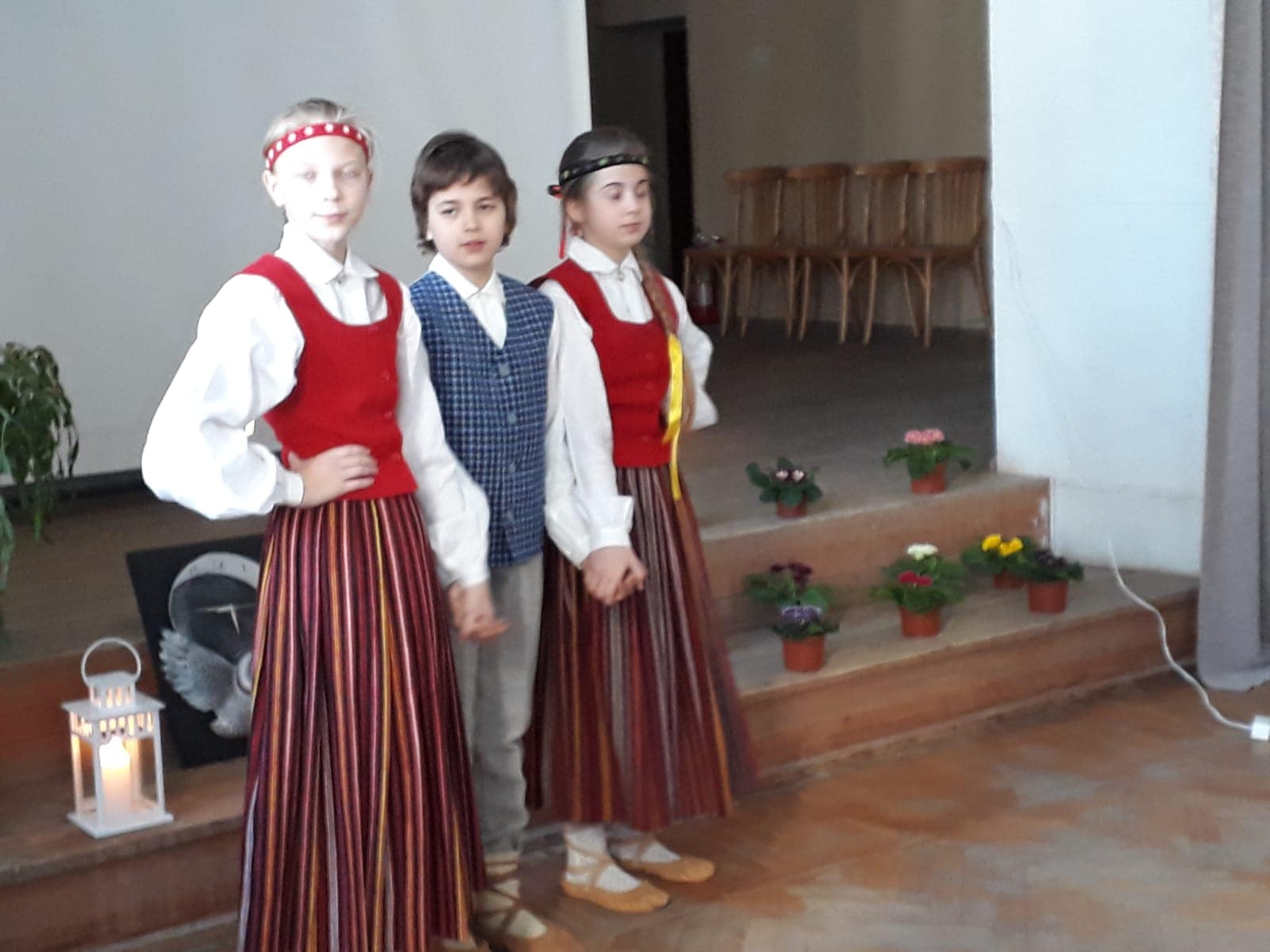 Projekta vadītāja A.Medejse prezentēja projekta realizācijas gaitu, bet folkloras kopas dalībnieki ar spēlēšanu, dejošanu iepriecināja pasākuma dalībniekus, demonstrējot gan darinātos vainadziņus, gan jaunos tērpus, gan savu prasmi uzstāties.