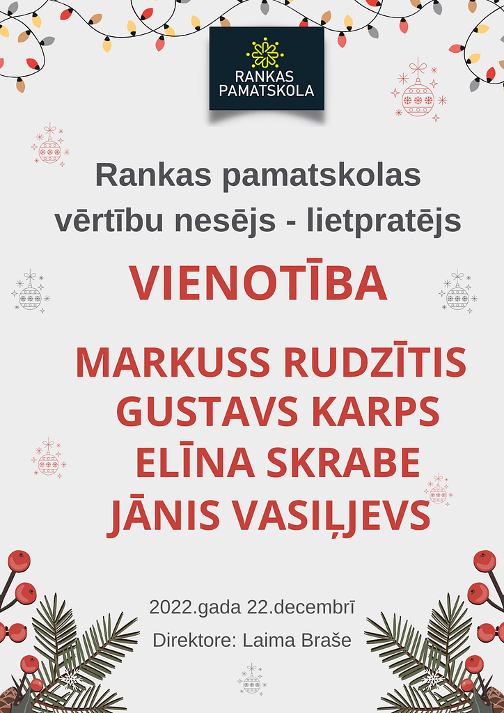 2.klases skolēni – Mikus Daniels Brencis, Andrejs Ozols, Mārcis Pētersons, Rūta Rudzīte