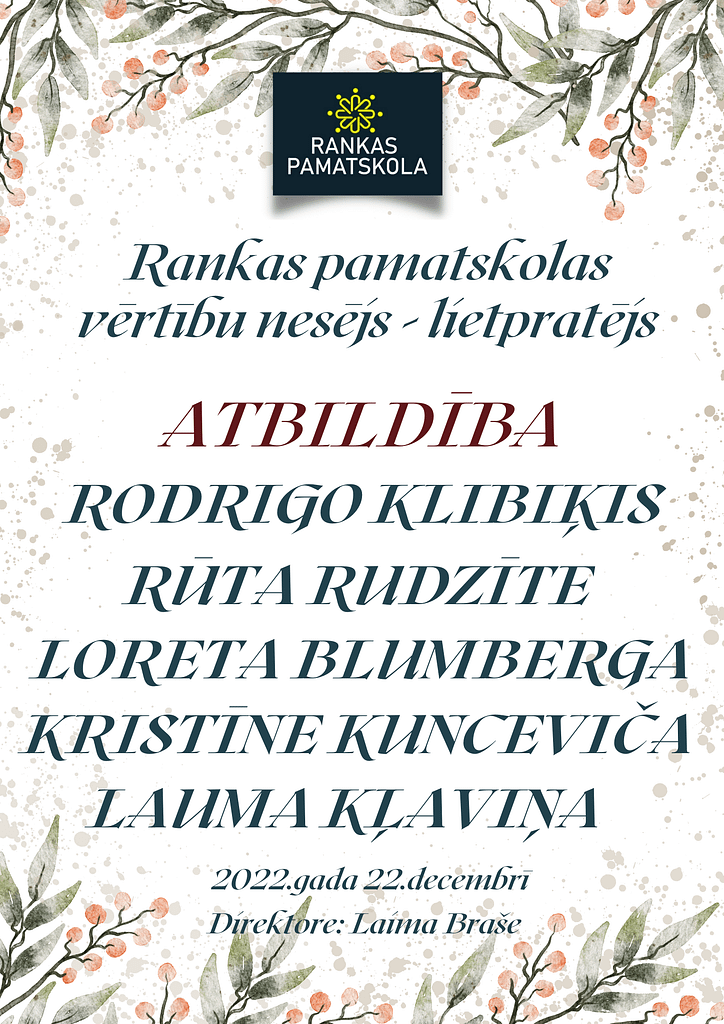 SKOLAS VĒRTĪBU NESĒJI 2022./2023. MĀCĪBU GADA 1.SEMESTRĪ